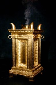 In heaven, according to Revelation 5:8, there was an altar upon which the prayers of the saints rose up before the throne of God. This is represented in Moses’ tabernacle by the altar of incense. An altar is a place of sacrifice. This altar is much smaller than the one outside the Holy Place but it is solid gold and speaks of the sacrifices Christians are called upon to make. These sacrifices have to originate from relationship with God in prayer and through prayer be continued.